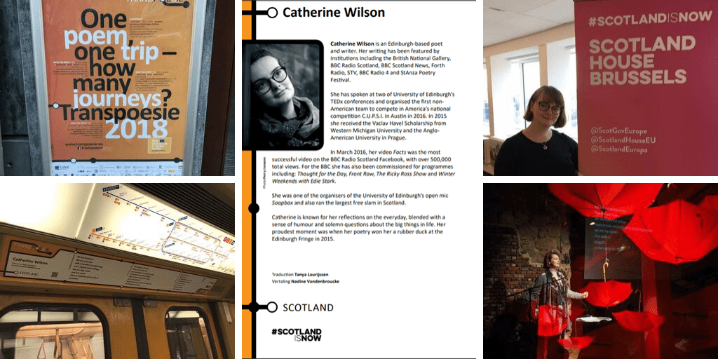 In October 2018, I represented Scotland as part of the international “Transpoesie” festival in Brussels. There my work was translated into French and Dutch, turned into a live European flash-mob and displayed on Brussel’s public transport system.
